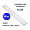 Kit8 Luminária Led Sobrepor Linear Slim 18w Branco Frio 60cm