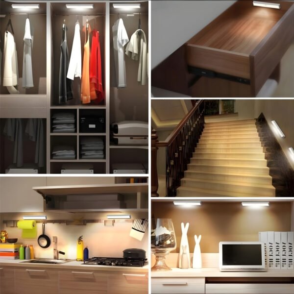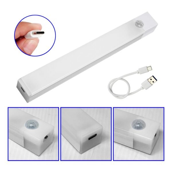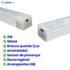 Com sensor de presença, a luminária acende automaticamente ao detectar movimento, dispensando interruptores. É recarregável, eliminando o uso de pilhas ou fios — basta carregar e instalar onde desejar.