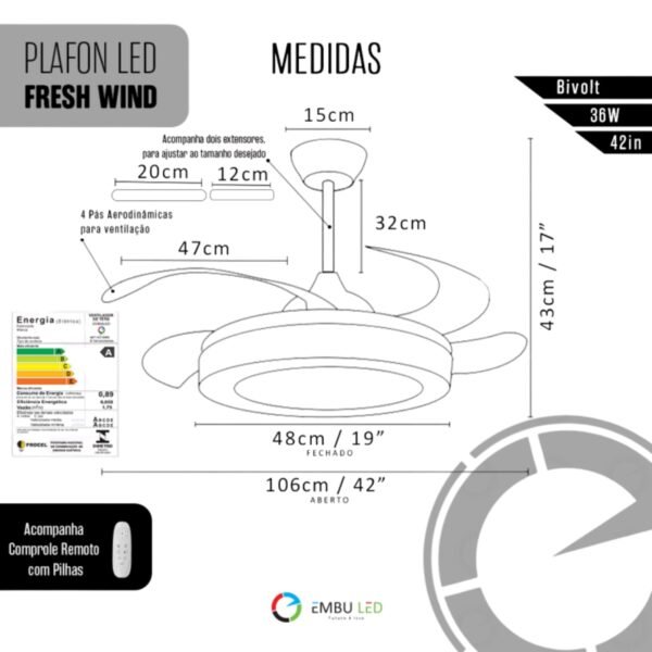 O Plafon LED Fresh Wind é a escolha perfeita para quem busca conforto, economia de energia e estilo, transformando qualquer ambiente em um espaço moderno, iluminado e ventilado.